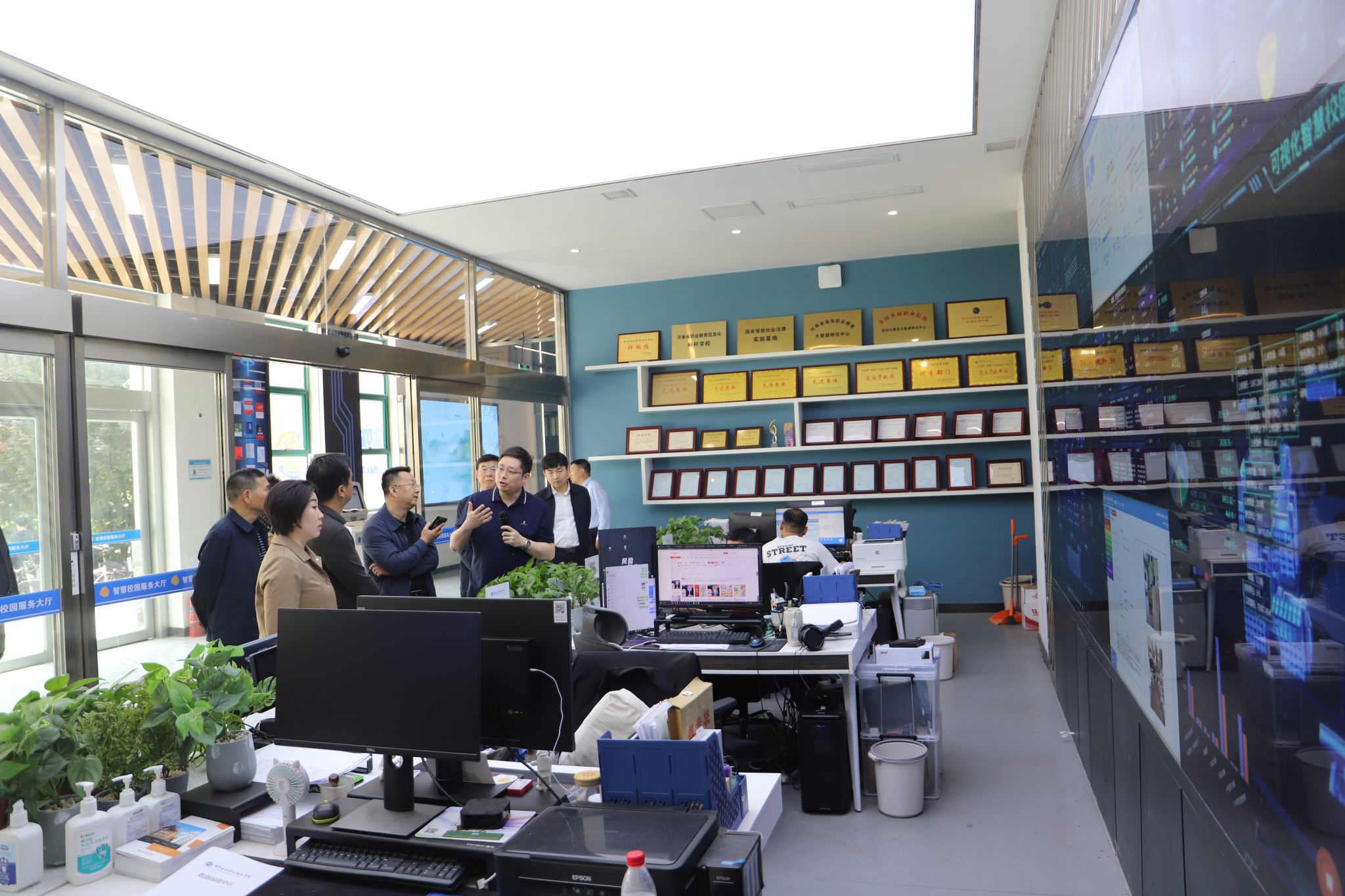 与会人员就专业发展、学科建设、师资培养等工作进行了深入的交流探讨,为进一步深化学校的援疆工作明确了前进方向和行动路径。座谈会后,王强一行参观考察了环境工程学院实训室、测绘工程学院实训室、足迹文化景观、智慧校园服务大厅、鲲鹏山水利水电仿真实训基地、黄河工程文化长廊等地。