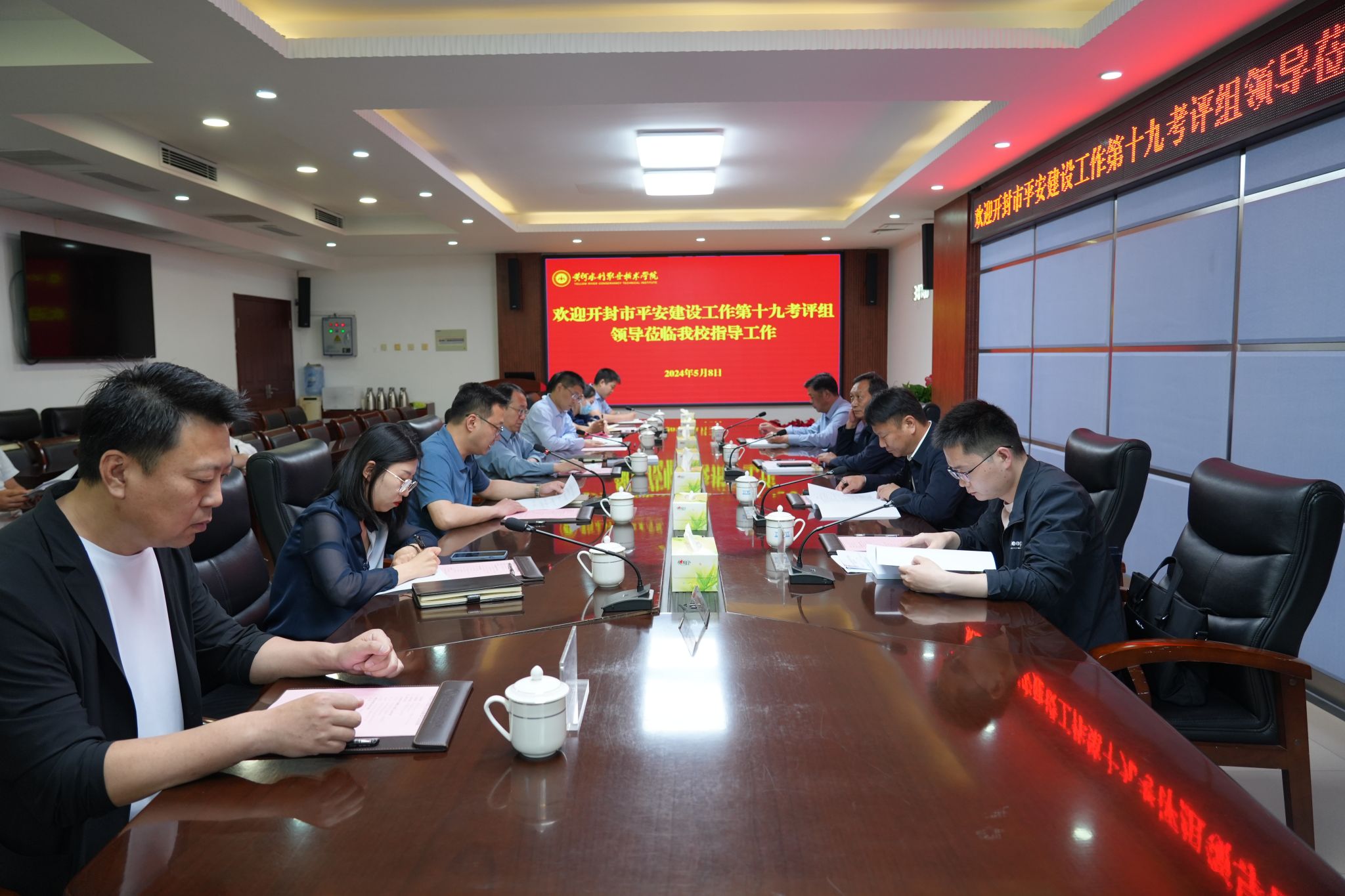 5月8日下午,以开封市退役军人事务局一级调研员刘燕会为组长的开封市平安建设第十九考评组莅临365官网,对365官网平安建设工作进行检查。汇报会在行政楼第一会议室召开,副校长周志琦出席会议。党政办公室、党委宣传部、学生工作部、保卫部、后勤管理服务中心等负责人参会。