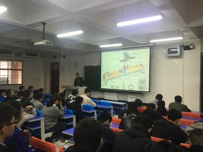 图1 陈海军工程师向大家讲授轨道小车的组成