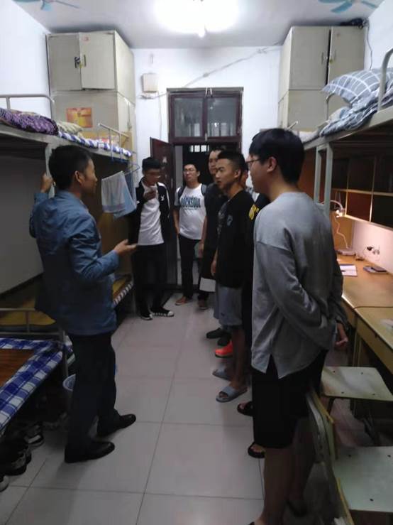 9月19日晚,纪勇书记带领我院分团委书记陈普智及全体辅导员深入学生宿舍进行安全检查。