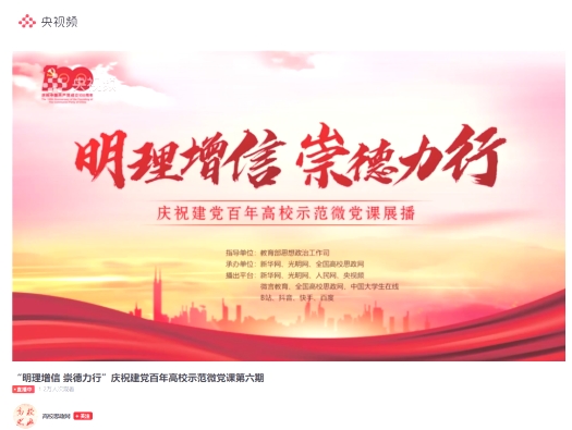 为深入推进高校党组织庆祝建党百年行动,做好党员“述学述职述廉”,强化“谋大事、解难事、办实事、创新事、长本事”,集中展示高校战线学党史、悟思想、办实事、开新局的突出成效,教育部自6月11日起推出了“明理增信 崇德力行”庆祝建党百年高校示范微党课。