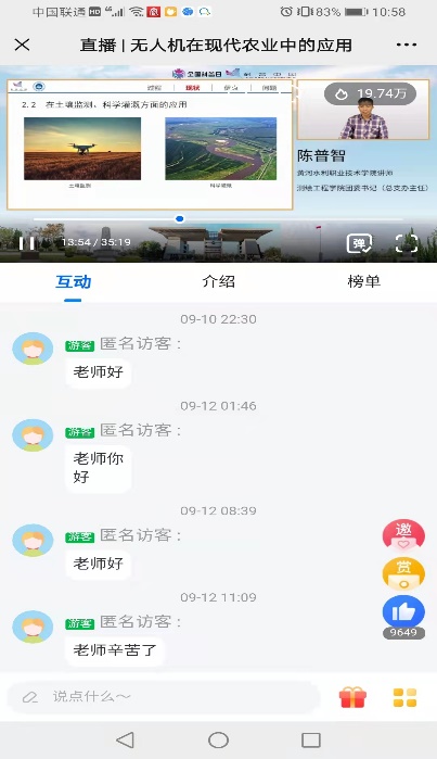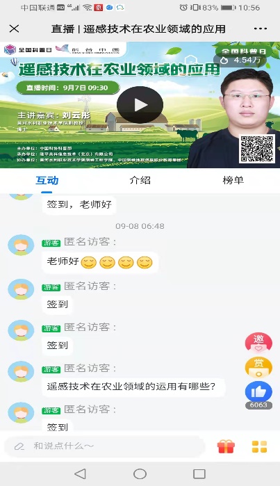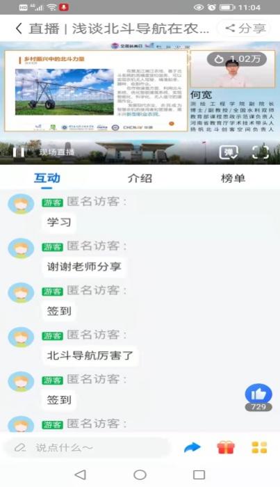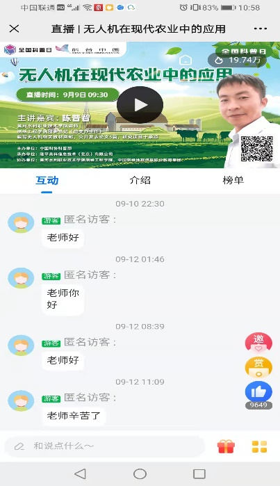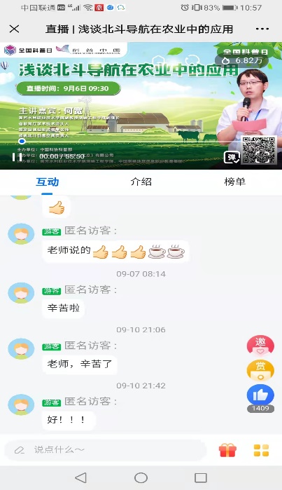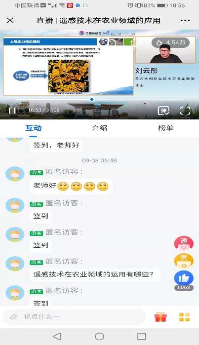 由中国科协科普部主办,beat365唯一官网测绘工程学院协办的《智慧农业为乡村振兴注入新动力》于9月6日连续5天在科普中国、云上智农平台进行直播。beat365唯一官网测绘工程学院副院长何宽带领团队成员孙飞、刘云彤、陈普智和王伟峰等5名教师,从《浅谈北斗导航在农业中的应用》《遥感技术在农业领域的应用》《农机导航自动驾驶技术应用及发展》《无人机在现在农业中的应用》《GIS技术助力乡村振兴》等5个方面进行讲述,深入浅出地科普各种技术在智慧农业中的应用。视频开播至今,热度已超过45万。