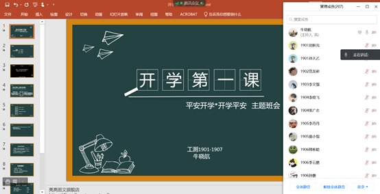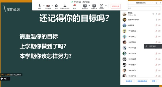 2021年9月11日10:00,牛晓航老师在腾讯会议为工测1901-1907班召开“开学第一课”主题班会。