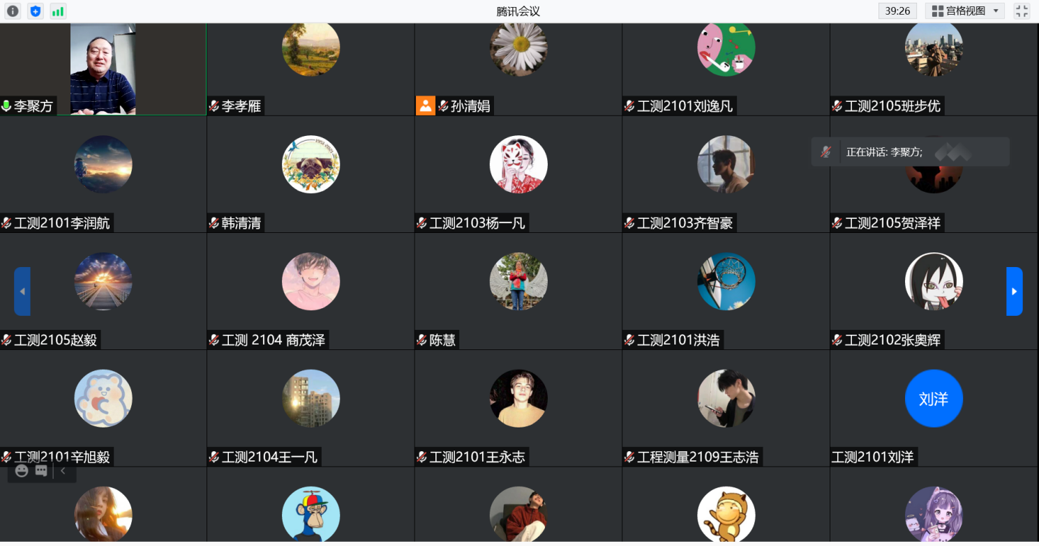 图1 工程测量技术专业李聚方教授与2021级新生在线见面