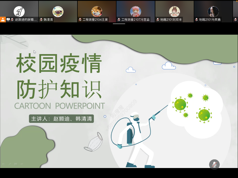 下午,辅导员开展了疫情防控主题班会。会上表扬了暑期受疫情、暴雨影响积极勇敢充当志愿者的优秀学生,鼓励同学们在保护好自己的前提下,向榜样看齐,争做先锋模范。会议重点强调了疫情常态化背景下的防控要求和线上学习的相关要求等,希望同学们严格要求自己,以饱满的热情开启大学教育新篇章。
