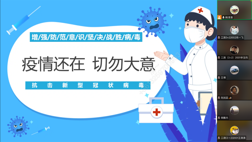 为把常态化防控融入学习和生活各个领域,维持教育教学校园生活的正常秩序,严格防患于未然,11月15日下午,2020级辅导员韩清清召开“疫情还在·切勿大意”主题班会,此次班会参加的班级有工程测量(3+2)2001班和工程测量(3+2)2002班。
