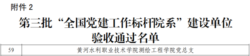 近日,教育部办公厅发布《第三批新时代高校党建示范创建和质量创优工作和第二批高校“双带头人”教师党支部书记工作室建设单位验收结果的通知》,测绘工程学院党总支顺利通过验收,获评第三批“全国党建工作标杆院系”。