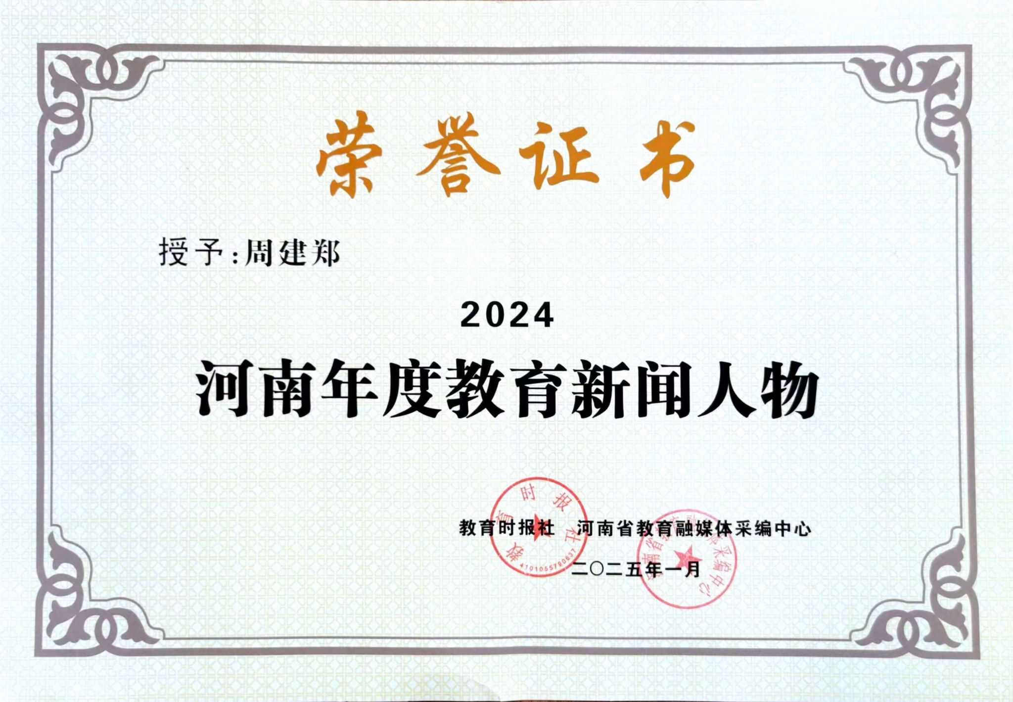 2024河南年度教育新闻人物周建郑