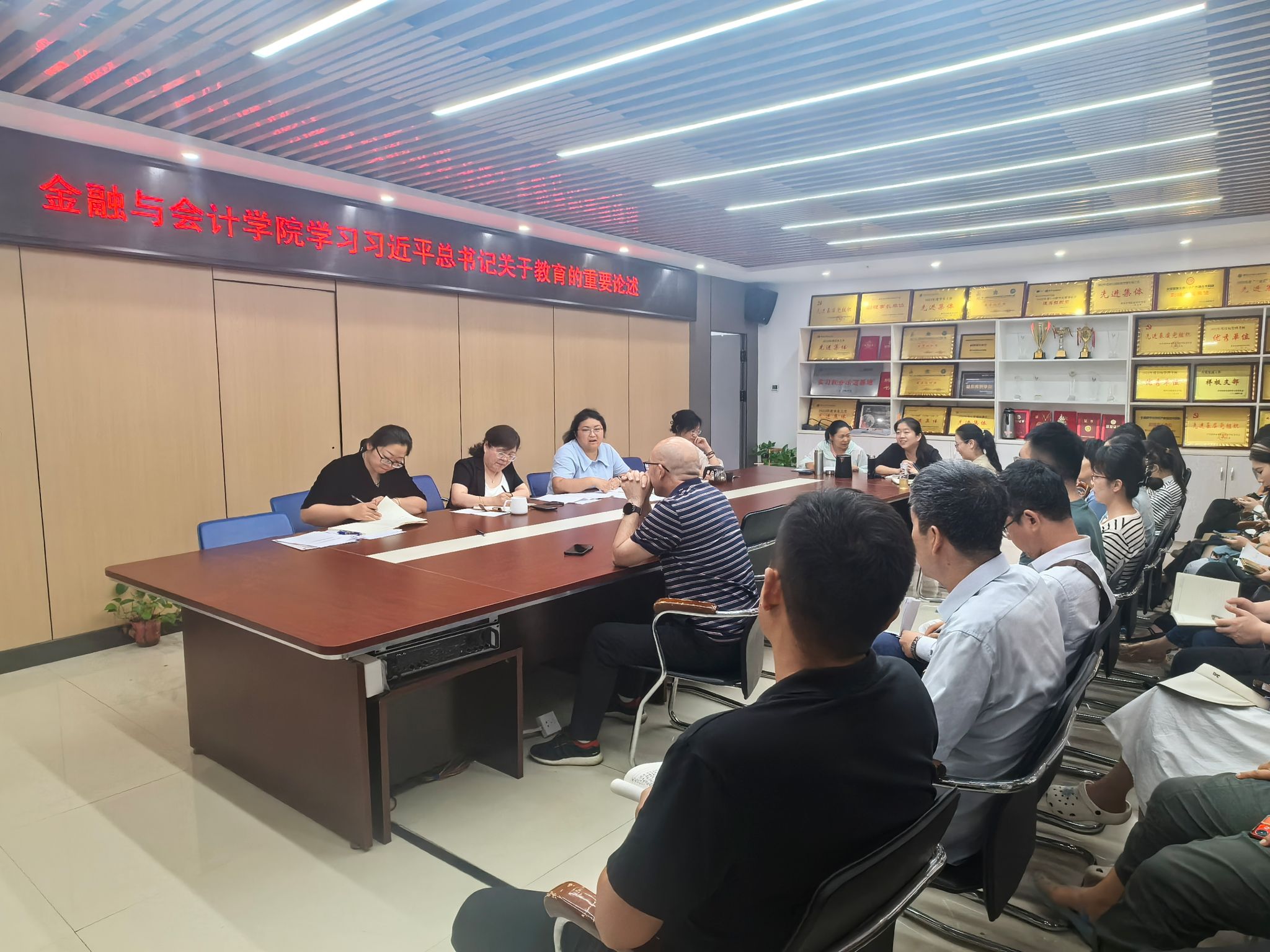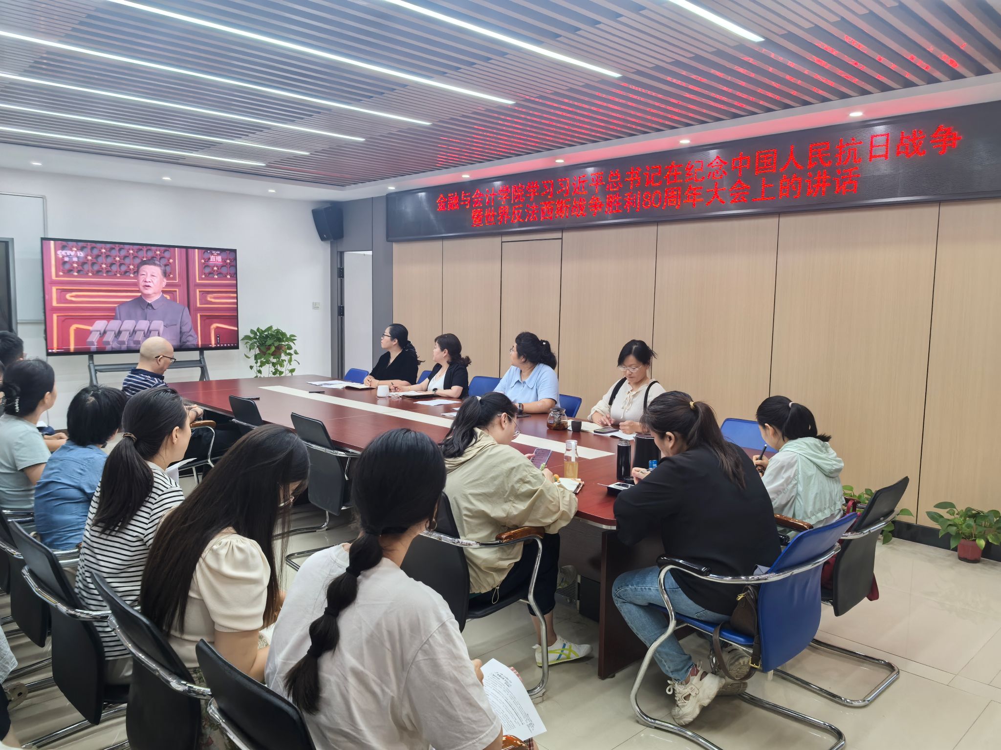 9月9日上午,金融与会计学院在SY5412会议室召开政治理论专题学习会,集中学习习近平总书记在纪念中国人民抗日战争暨世界反法西斯战争胜利80周年大会上的讲话、习近平总书记关于教育的重要论述,全体教职工参会,会议由院长吴宗奎主持。