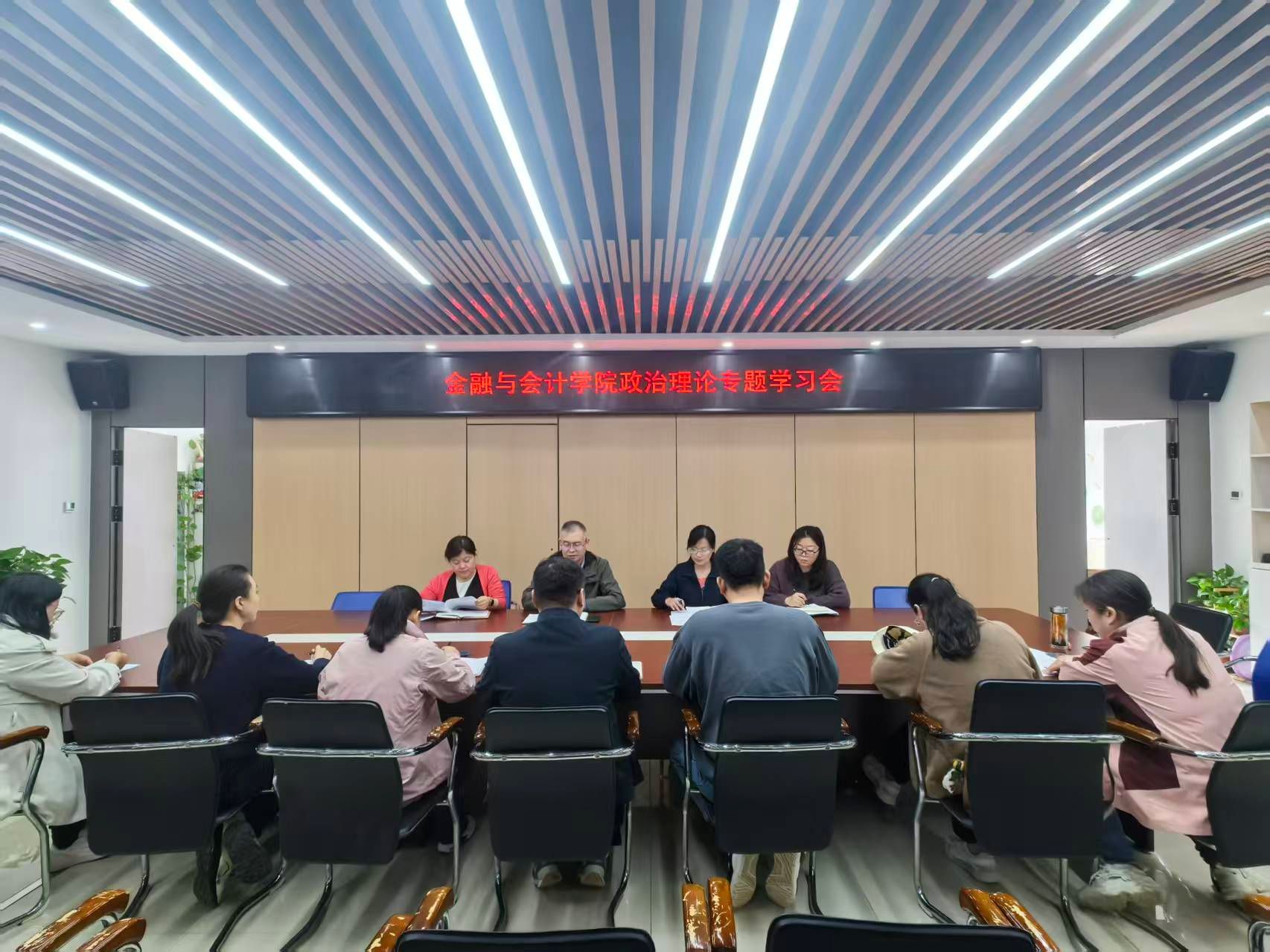 10月14日上午,金融与会计学院在SY5412会议室召开政治理论专题学习会,集中学习《习近平谈治国理政》第五卷和习近平总书记给全国特岗教师代表重要回信精神,学院全体科级以上干部参加,会议由院长吴宗奎主持。