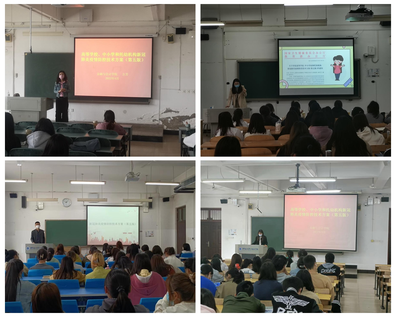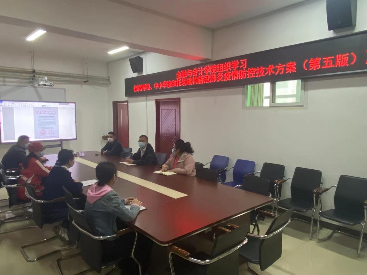 为进一步做好新冠肺炎疫情防控工作,有序落实常态化防控与应急处置措施,4月14日-15日,金融与会计学院分别召开辅导员工作会议和主题班会,传达学习《新冠肺炎疫情防控技术方案(第五版)》文件精神,重点学习了《高等学校新冠肺炎疫情防控技术方案(第五版)》。