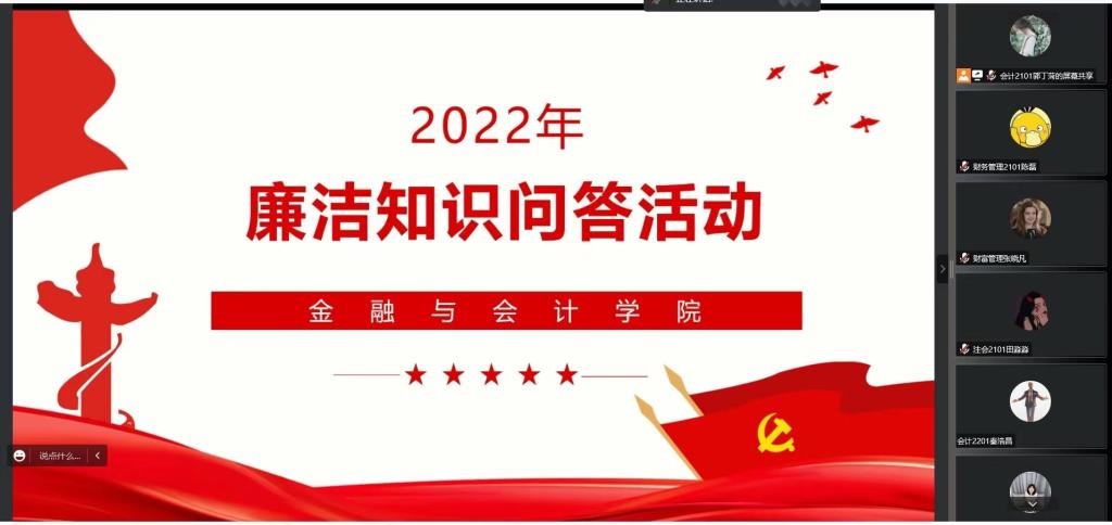 为深入学习贯彻习近平新时代中国特色社会主义思想和党的二十大精神,进一步强化学生廉洁意识,12月4日下午,金融与会计学院举办2022年廉洁知识问答活动,活动由院学生会监察部承办。