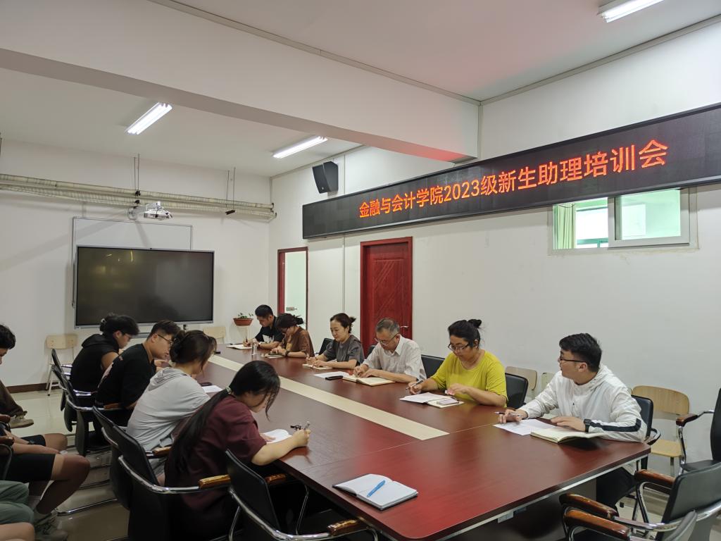 9月7日中午,金融与会计学院2023级新生辅导员助理培训会在SY5412会议室举行,院党总支书记吴宗奎、副书记胡晓慧、分团委书记马峥以及23级新生辅导员和助理参加了会议。会议由分团委书记马峥主持。