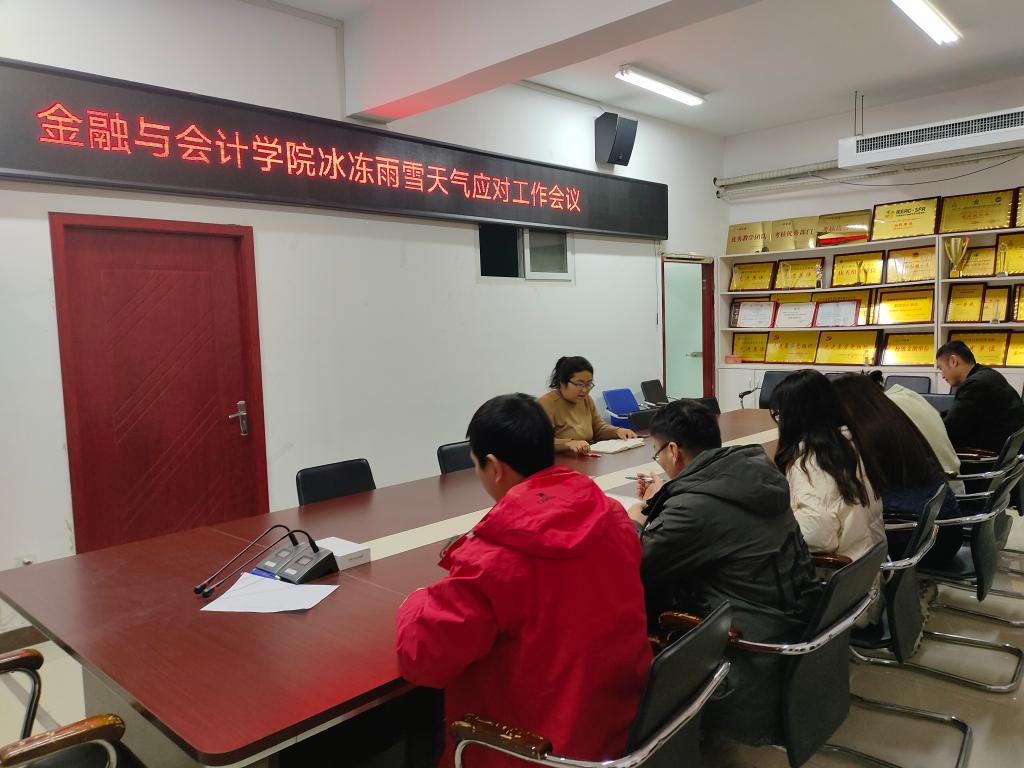 12月13日下午,金融与会计学院在SY5410召开冰冻雨雪天气应对工作会议,会议由学院党总支书记胡晓慧主持,分团委书记马峥及全体辅导员参加了此次会议。