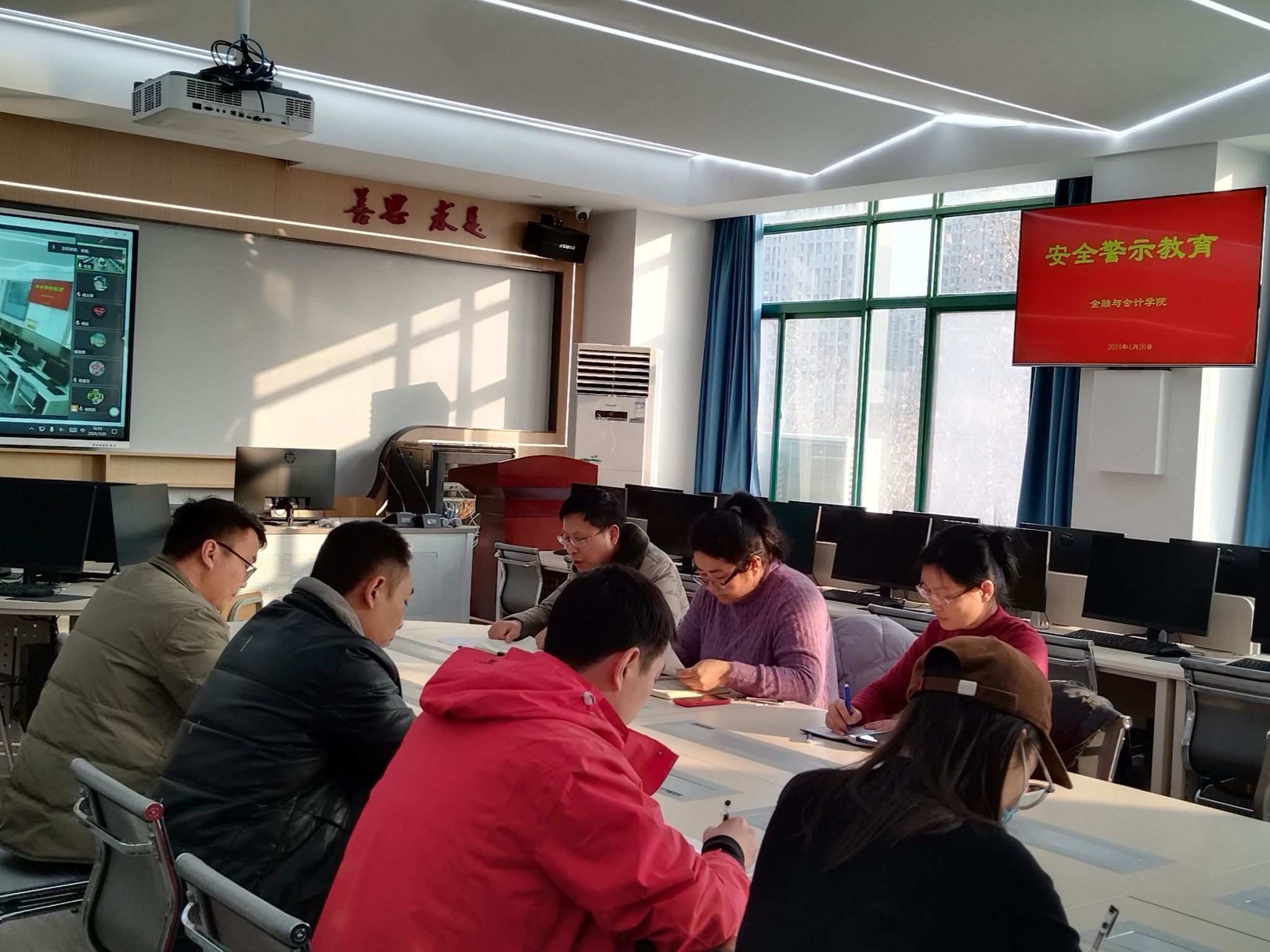 1月20日下午,金融与会计学院在SY8308召开安全警示教育会议,本次会议采用线上线下结合的方式举行,院党总支书记胡晓慧、院长李冠军、副书记霍卫红行政办主任、实训室负责人、全体辅导员线下参加了会议,其余教师通过腾讯会议参加了本次会议。会议由院长李冠军主持。