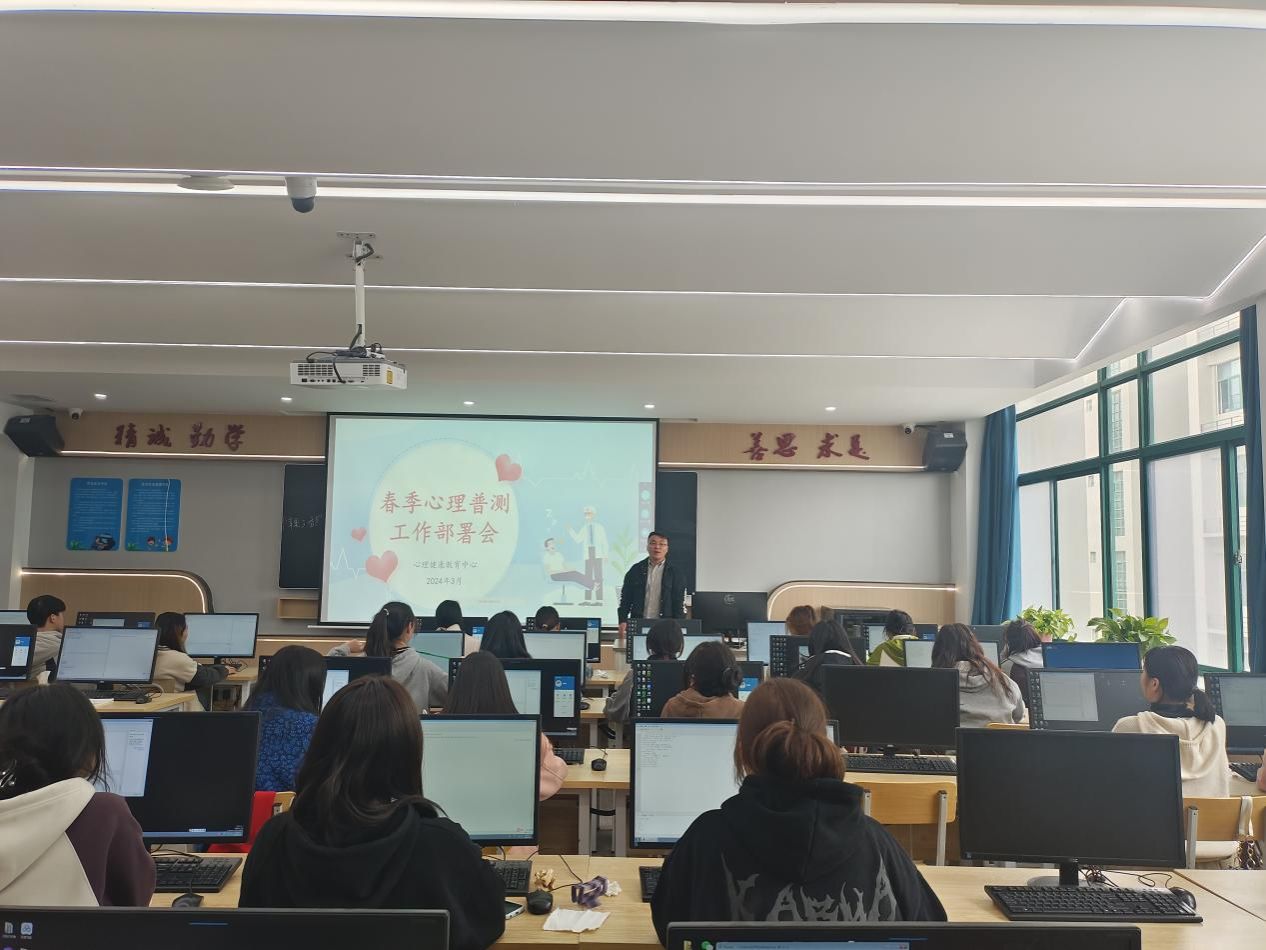 正式测评之前,辅导员首先向同学们说明了心理普测的目的和重要性,接着宣读本次心理测试指导语,介绍心理测试的流程、施策内容以及测评结果的保密性,并强调了测试现场的纪律性。随后同学们根据流程,登录网站进入测评页面开始进行答题。在测评过程中,同学们积极配合,态度端正,认真独立地进行答题。