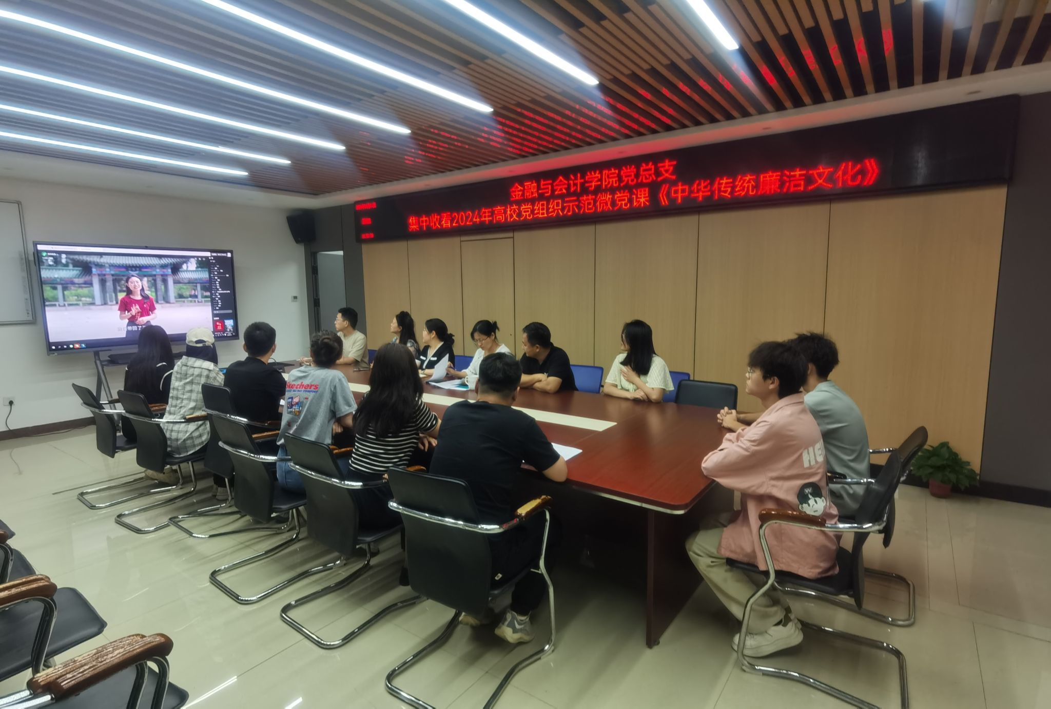 为展现主题教育成果,铸魂增智育新人,正风促干书新篇,教育部推出高校党组织示范微党课,引领广大干部师生深化理论武装,坚定理想信念,锤炼政治品格。6月21日下午,金融与会计学院党总支全体党员在SY5412通过线上观看高校党组织示范微党课第一讲《中华传统廉洁文化》,会议由党总支副书记霍卫红主持。