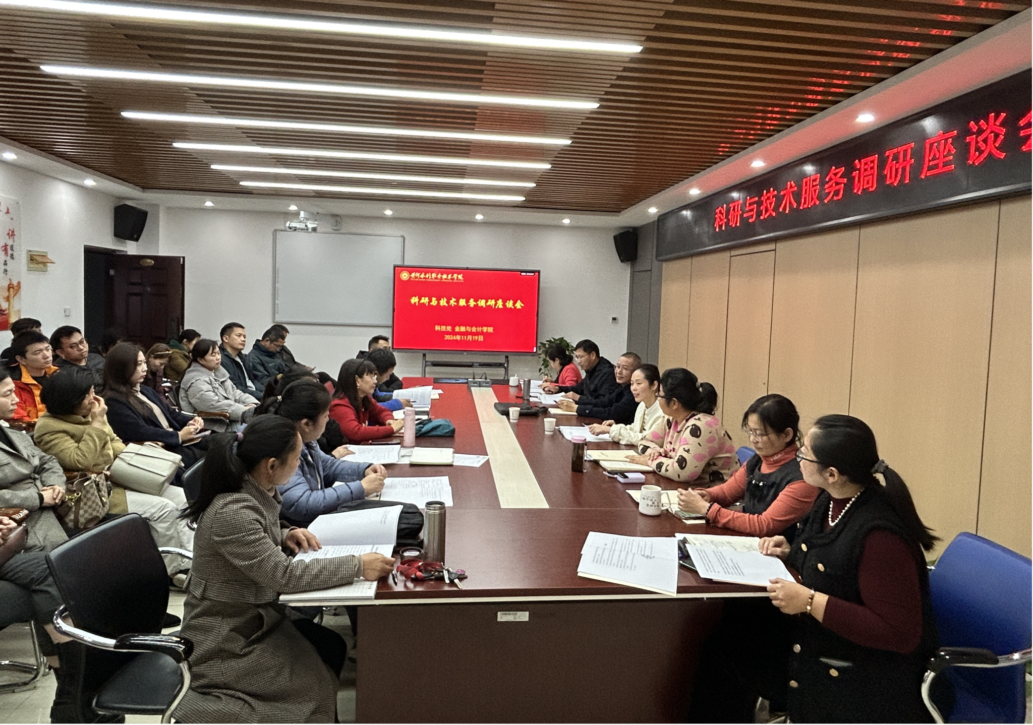 11月19日下午,金融与会计学院在SY5412开展了科研与技术服务调研座谈会。此次会议由副院长舒莎主持,科技处副处长戴玉、聂大勇以及金融院全体教师参会。