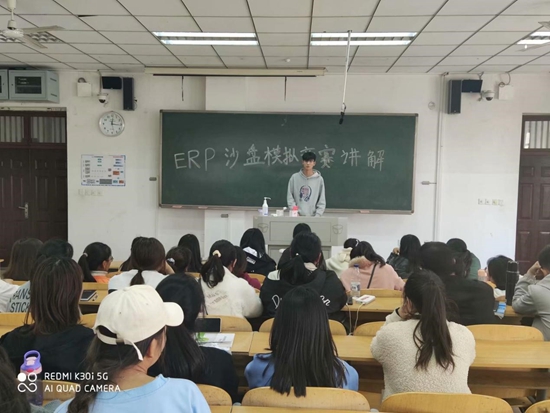 活动中,任青丝老师向同学们讲解了ERP沙盘模拟经营的基础知识和模拟经营过程中的不同分工和操作要点;协会负责同学孔德龙分享了参加ERP沙盘模拟竞赛的参赛经历和比赛经验,并号召同学们积极参赛;徐莉莉老师介绍了云会创客空间,展示了创客空间的活动情况。