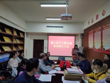 209年12月17日下午,教工电气工程支部在SY5515召开党员转正大会,讨论胡青璞同志的转正事项。支部全体党员参加了大会,会议由支部书记葛芸萍主持。