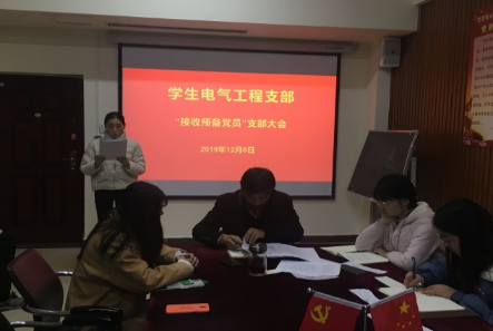 2019年12月6日电气工程学院党总支学生电气工程支部在实训楼5515召开2019年下半年党员发展大会。参加本次会议的人员有电气工程学院党总支副书记管欣、全体支部委员和在校的全体学生党员同志以及严璐等16名发展对象。