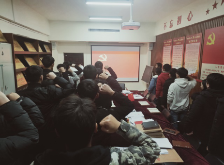 管书记最后做总结发言,他要求学生党员们要在生活的时时刻刻严格按照党章、党规、来规范自己;认真学习宣传贯彻习近平新时代中国特色社会主义思想,可以做到带领班级、年级、甚至在以后的工作单位用自己力量排除万难、破浪前行,推动中国特色社会主义伟大事业进入新的阶段,会议最后,参加会议的所有人起立面向党旗宣誓。