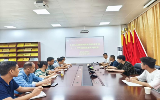 为进一步提升学生资助工作队伍的政策理论水平和业务实践能力,精准落实国家及学校各项资助政策,切实保障家庭经济困难学生安心求学、健康成长,9月12日,我院在SY4302B会议室举办学生资助工作专题培训会。学生资助管理中心资助管理科科长李朝阳受邀作资助专题讲座,我院党总支副书记赵鹏、全体辅导员及院资助工作部学生干部参加培训。
