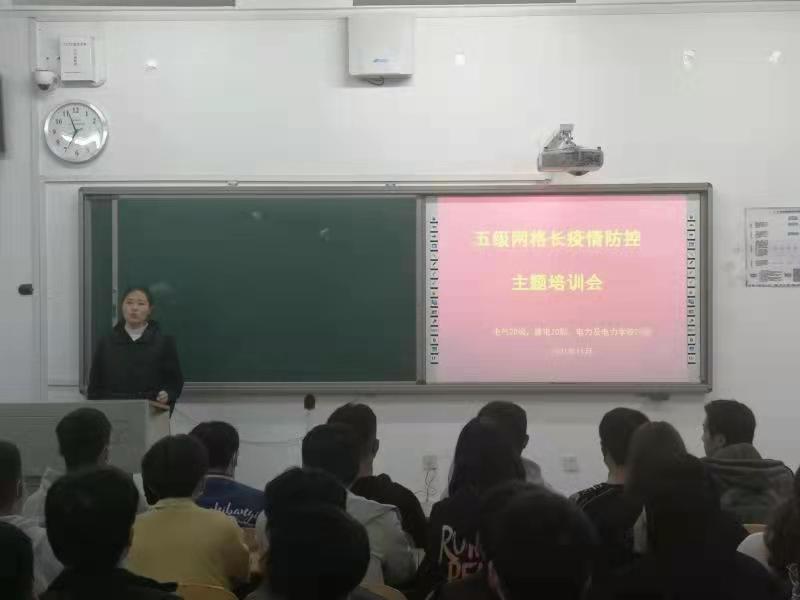为了加强校园疫情防控,增进学生对疫情防控知识了解,掌握疫情防控各项规章制度,电气工程学院在2021年11月8——13日之间分六次组织召开五级网格长业务培训工作会议。