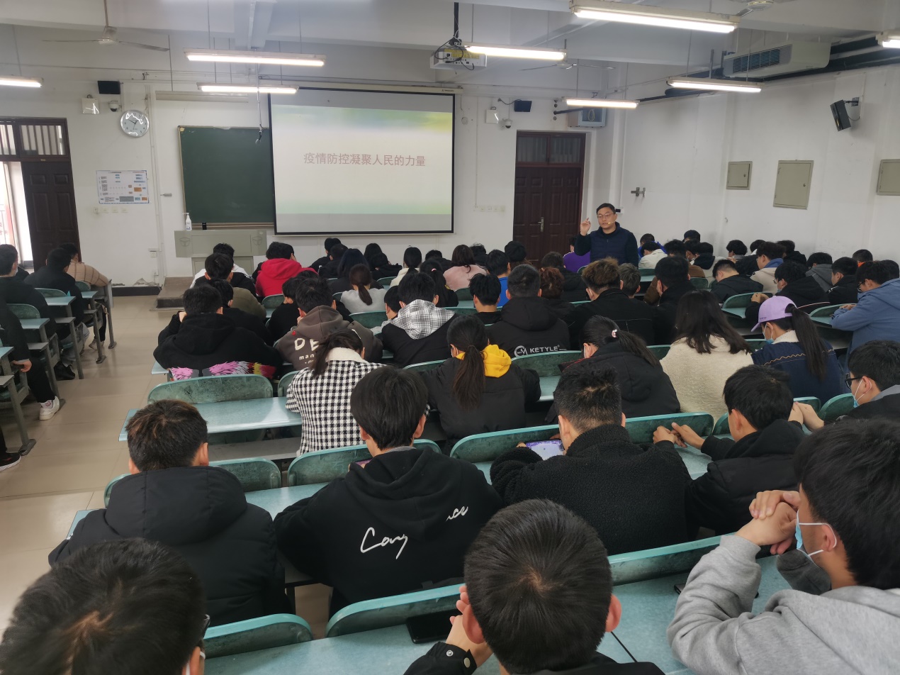3月15日,院党总支副书记管欣在JX6103召开各班级学生代表参加的集体主题班会。管书记为同学们讲述了生动鲜活的中国战“疫”故事,通过客观对比国内外在重大灾难面前突显出的国家治理体系和治理能力,向同学们阐述了中国特色社会主义制度的显著优势,勉励学生要切实坚定四个自信、增强四个意识、做到两个维护。针对疫情防控常态化背景下的新学期生活,管书记要求同学们要尽快调整,以良好风貌迎接新学期学习生活;要遵规守纪,坚决服从疫情防控规定;要科学规划,努力完善提高自身综合素质。