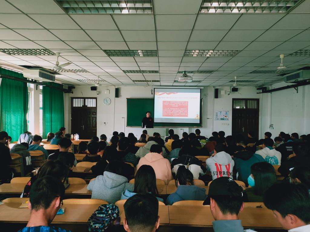 11月5日至11月6日,线下课堂由学生党员王维杲、霍震霆等6名党员面向本院6个专业共370余名同学讲述了党的伟大历程、决胜脱贫攻坚主题思想。