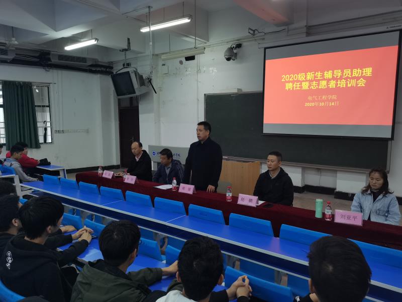 10月14日中午,我院在JX2102召开2020年新生辅导员助理聘任暨志愿者培训会,党总支书记胡健、副书记管欣,全体学工人员以及新生辅导员助理和志愿者参加。