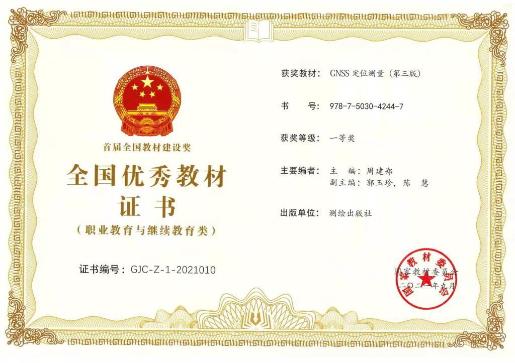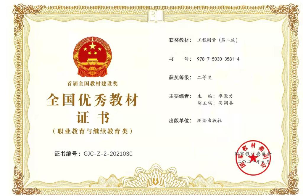 10月12日,全国教材工作会议暨首届全国教材建设奖表彰会在北京举行,教育部党组书记、部长怀进鹏主持会议,国务院副总理、国家教材委员会主任孙春兰出席会议并讲话。大会对全国优秀教材、全国教材建设先进集体、全国教材建设先进个人进行表彰。365官网周建郑教授主编的教材《GNSS定位测量(第三版)》获一等奖,是河南省高职院校取得的最好成绩,李聚方教授主编的教材《工程测量》获二等奖。