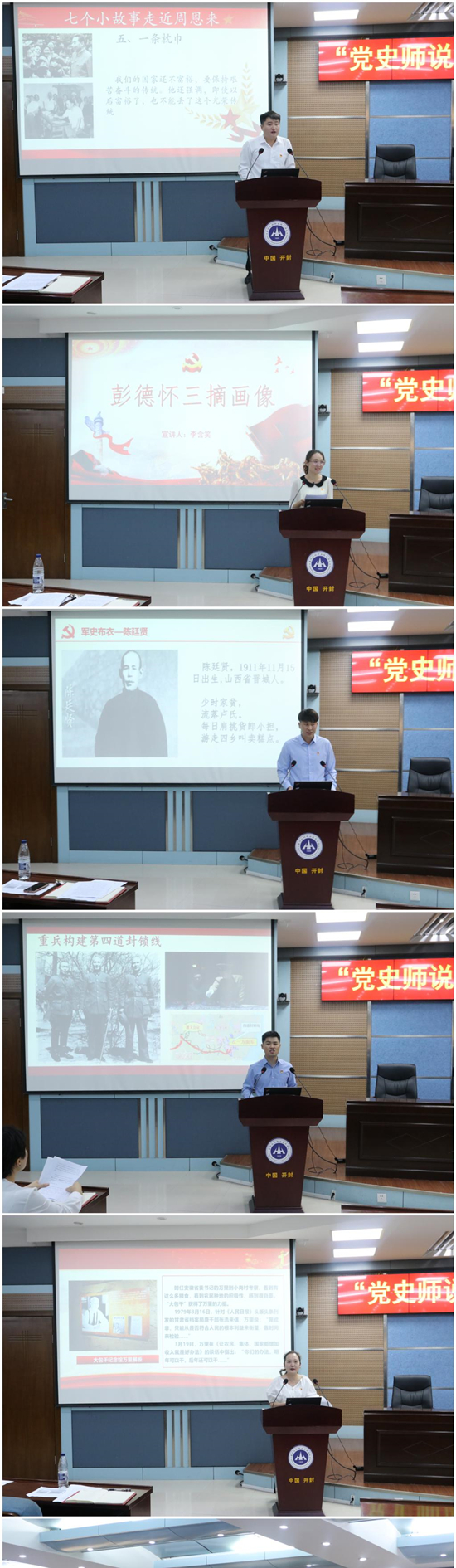 宣讲会上,测绘工程学院辅导员赵颢迪、艺术与设计学院辅导员李含笑、机械工程学院辅导员王浩宇、信息工程学院分团委负责人何昕、金融与会计学院分团委书记马峥分别进行了题为《七个小故事走进周恩来》《彭德华三摘画像》《军史布衣陈廷贤》《血战湘江》《十八个血手印》的党史宣讲。宣讲结束后进行了有奖问答环节,全体师生踊跃参与,将宣讲会的气氛带到了高潮。