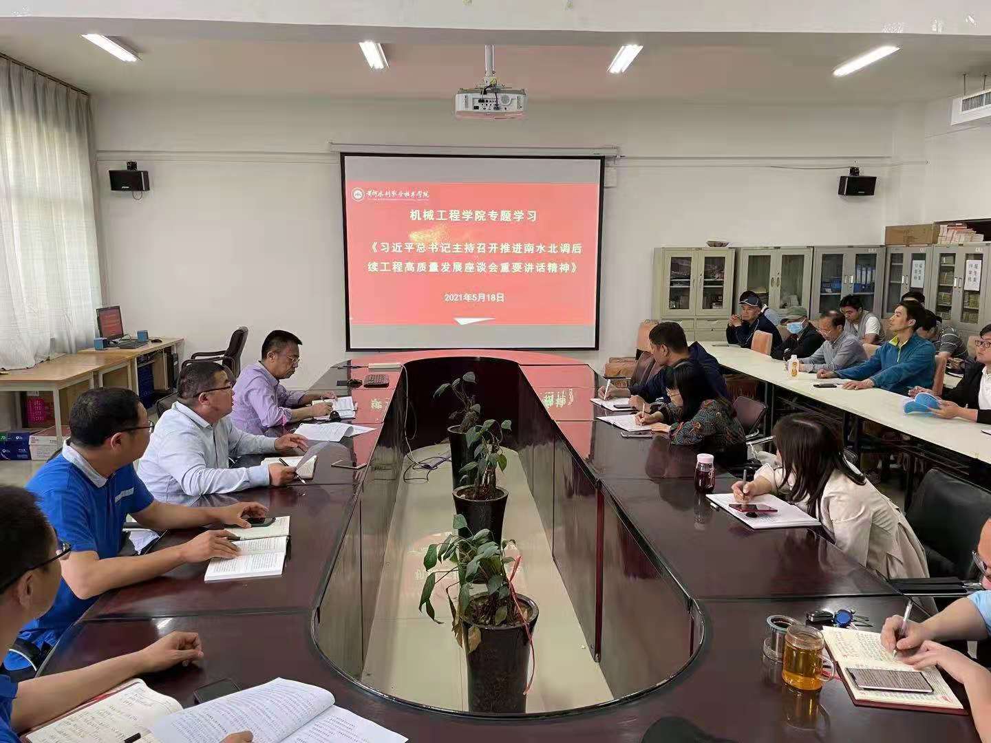 编者按:5月14日上午,习近平总书记在河南省南阳市主持召开推进南水北调后续工程高质量发展座谈会并发表重要讲话。他强调,南水北调工程事关战略全局、事关长远发展、事关人民福祉。进入新发展阶段、贯彻新发展理念、构建新发展格局,形成全国统一大市场和畅通的国内大循环,促进南北方协调发展,需要水资源的有力支撑。365官网各部门、各个单位组织深入学习了总书记的重要讲话精神,师生们纷纷表示,要牢记总书记嘱托,完整、准确、全面贯彻新发展理念,扎实做好各项工作,助力南水北调后续工程高质量发展,以优异成绩庆祝中国共产党成立100周年。