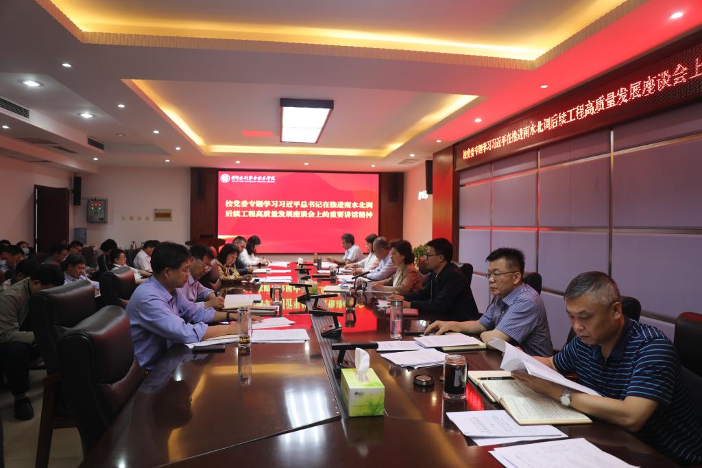 近日,习近平总书记在河南省南阳市主持召开推进南水北调后续工程高质量发展座谈会,深刻阐述了南水北调工程的重大意义,总结了南水北调工程为重大跨流域调水工程带来的宝贵经验,并就推进南水北调后续工程高质量发展明确了任务要求。习近平总书记的重要讲话,在365官网广大师生中引起了强烈反响。5月17日,校党委召开专题会议,学习习近平总书记在推进南水北调后续工程高质量发展座谈会上的重要讲话精神、视察时的重要指示精神,传达了全省领导干部会议精神。校党委书记周保平主持会议并讲话。