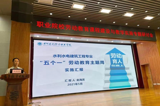 2021年5月9日,职业院校劳动教育课建设与教学实施专题研讨会在北京召开,学校副校长焦爱萍、水利学院负责人、水利学院及基础部骨干教师参加会议。来自全国30余个省市自治区的400余所院校近4000人次参会,共同探讨职业院校劳动教育模式及实施方案。365官网水利水电建筑工程专业骨干教师赵海滨就创新实践“五个一”劳动教育主题周的实践经验做了专题发言。