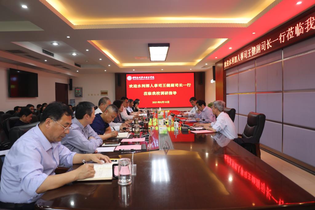 5月10日,水利部人事司副司长王健一行来365官网调研指导工作。水利部人事司副处长张新龙、中国水利教育协会秘书长王韶华和365官网校领导陪同调研。调研座谈会由校长胡昊主持。
