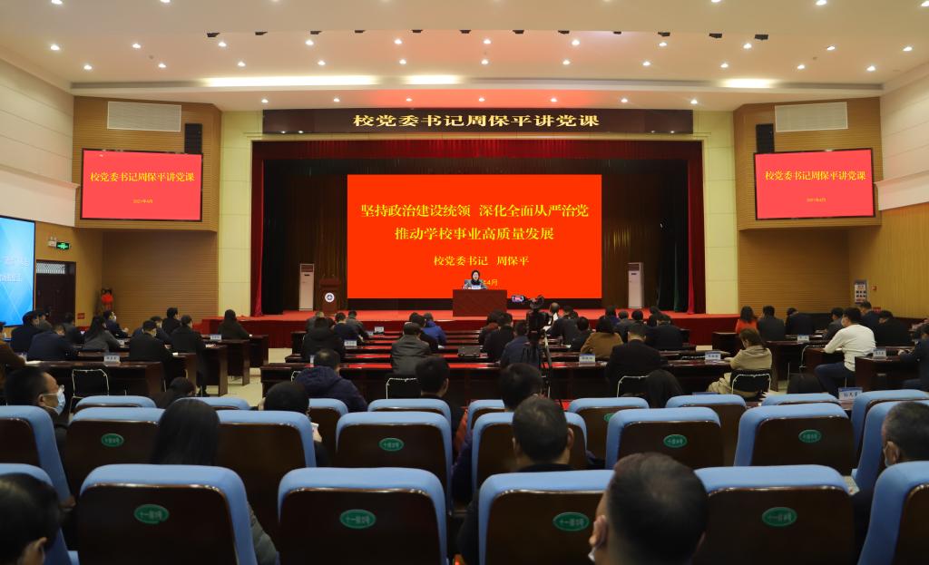 4月20日,校党委书记周保平在学生活动中心报告厅,以《坚持政治建设统领 深化全面从严治党 推动学校事业高质量发展》为题为全体党员干部上专题党课。