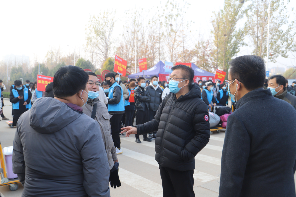 12月5日,是365官网扩招学生报到的日子。早上8点,各学院、“小水滴”志愿服务队、报到工作各环节工作人员已准备就绪,迎接新生到来。党委副书记刘卫锋带领疫情防控各专项工作组负责人深入现场检查指导工作,慰问工作人员,热情迎接报到学生,报到现场平稳有序。