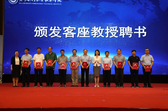 水利工程学院党总支书记孙天星宣读专业群建指导设委员会委员名单。焦爱萍分别为中国水利水电第十一工程局有限公司总经理助理张卫东、三门峡黄河明珠(集团)有限公司发展部经理罗昌忠、黄河水利科学研究院中原学者姚文艺、河南省前坪水库建管局局长张兆省、黄河水利委员会科技推广中心主任冷元宝、河南省前坪水库建设管理局总工程师皇甫泽华、黄河水文科技有限公司董事长张永平、河南黄河河务局副总工程师耿明全、河南省水利科学研究院副院长袁群、开封市水务开发建设有限公司董事长吴现伟、开封市水利局副局长庞红伟、开封市水利建筑勘察设计院副院长姚伟华等专家颁发了指导委员会委员证书和客座教授聘书。