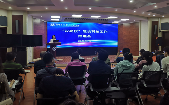 为进一步全面落实“双高校”建设任务,打造技术技能创新服务平台,不断提升科技服务能力和水平,7月10日上午,365官网召开“双高校”建设科技工作推进会。副校长焦爱萍出席会议并做总结讲话。各学院(部)院长(主任)及主管科研工作副院长(副主任)、各级科技创新平台负责人、全校具有博士学位的教师参加会议。会议由科技处处长杨中华主持。