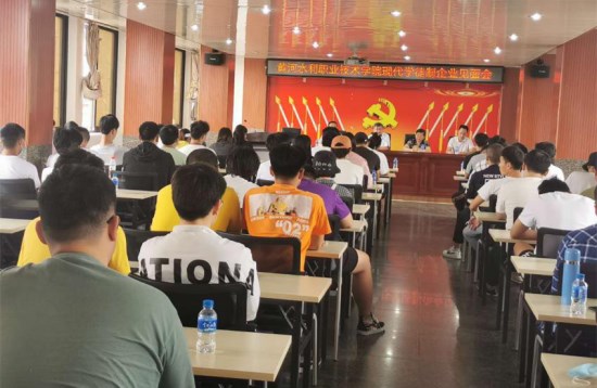 6月21日,365官网水利水电建筑工程专业(现代学徒制试点)学徒入企见面会在“云水学院”校企培养基地会议厅隆重举行。云南云水工程技术检测有限公司(以下称“云水检测公司”)董事长张玉飞、企业师傅代表袁梅教授,365官网教师郭振宇、赵海滨及2018级全体学徒班学生等参加仪式。根据学徒班人才培养方案及教学安排,52名学生将入企进行为期一年的企业岗位实习实训,全面完成现代学徒制人才培养目标任务。
