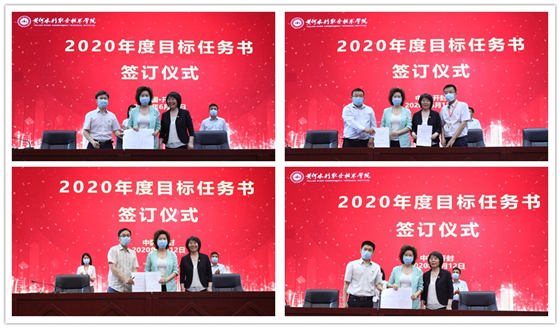会上,校领导与各任务牵头部门签订了2020年目标任务书,与各任务统筹部门签订了2020年“双高”建设任务责任书,相关部门、单位负责人及教师代表进行了表态发言。