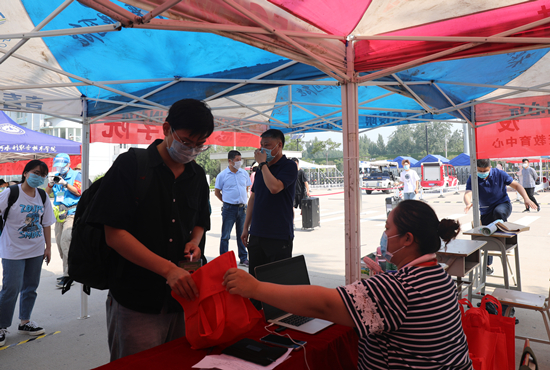 学生在报到处领取“复学礼包”