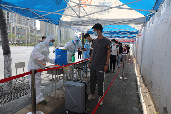第二批返校复学学生按所属学院错峰返校,分别于6月14日、21日、28日到校报到。(摄影:党委宣传部 郝迪婧)