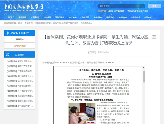 为深入贯彻落实国家“进一步做好在线教育教学”精神,保障在线教学质量,总结教师在线教学的优秀做法和教学成效,形成可复制可推广的典型经验和模式,全国高职高专校长联席会议组织开展了如何打造优秀“网上金课”在线分享活动。365官网王勤香教授的《学生为轴、课程为基、互动为体、数据为器 打造等效线上授课》案例成功入选。