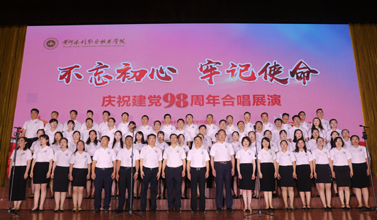 表彰大会结束后,学校举行了主题为“不忘初心、牢记使命”庆祝建党98周年合唱展演活动,用最真挚的情感、最嘹亮的歌声、最昂扬的精神状态向党的生日献礼。(摄影:党委宣传部 郝迪婧 袁洪博)