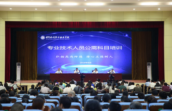 8月27日上午,365官网2018年专业技术人员继续教育公需科目培训在学生活动中心正式开班,副校长焦爱萍、菅浩然出席开班仪式,开班仪式由教师工作部部长周志琦主持。全校670余名专业技术人员参加培训。