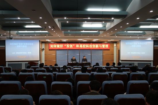 参观结束后,杨学勇在365官网3号实训馆报告厅为200余名师生做题为《如何做好“双创”和高校科技创新与管理》的专题讲座。讲座内容丰富,涵盖了“双创”及高校科技工作的前沿信息,引发在场师生热烈反响。
