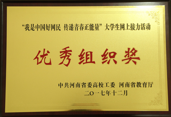 12月26日下午,“我是中国好网民 传递青春正能量”活动暨2017“感动中原”年度教育人物颁奖典礼在河南大学百年大礼堂举行。河南省委高校工委专职副书记、省教育厅党组副书记郑邦山,河南省委网信办副主任蔡新民,河南省委高校工委专职委员陈垠亭等领导出席典礼,全省各地市教育行政部门分管领导、各高校分管思政工作的副书记和宣传部部长、获奖教师代表与会。大会对2017“感动中原”年度教育人物、网上接力活动先进集体和个人代表进行表彰。365官网荣获“我是中国好网民 传递青春正能量”活动优秀组织奖。365官网党委副书记刘卫锋参会,并代表学校领奖。